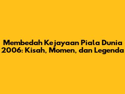 Membedah Kejayaan Piala Dunia 2006: Kisah, Momen, Dan Legenda